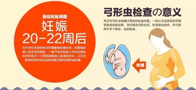 如果准妈妈刚刚怀孕的时候就得了弓形虫急性感染,通常这个孩子是不能要的。如果发生在准妈妈妊娠中、晚期,第一步要检查的是有没有出现宫内感染,根据检查结果来确定下一步的动作。如果弓形虫IgG呈阳性,说明准妈妈曾有弓形虫感染史,现在具有免疫力。